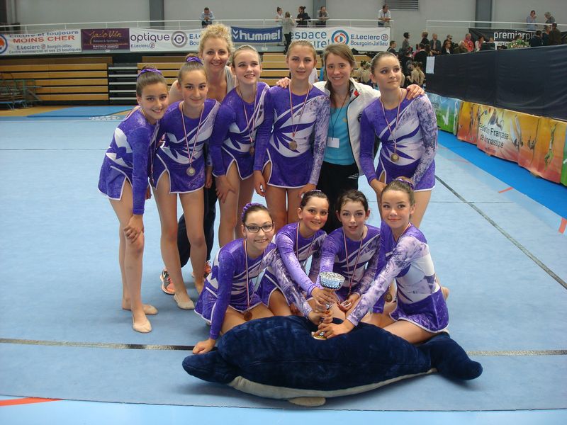Cette belle équipe n’a cessé de nous faire vibrer cette saison en se plaçant 2nd au Département, 1ère en Région. Nos gymnastes se sont donc brillamment qualifiées au Championnat de France GR qui aura lieu samedi 31/05/14 à Saint Brieuc en Bretagne où familles et supporters les accompagneront…